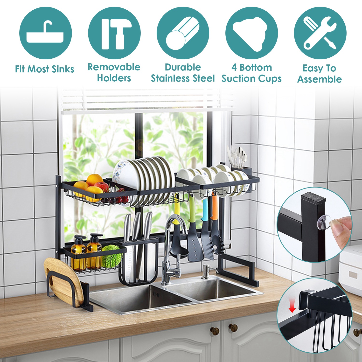 Home > 2-Tier Over the Sink Dish Drying Rack Drainer Utensil Organizer Holder Tableware Organizer Large Dish Rack for Kitchen Countertop Stainless Steel 33.7