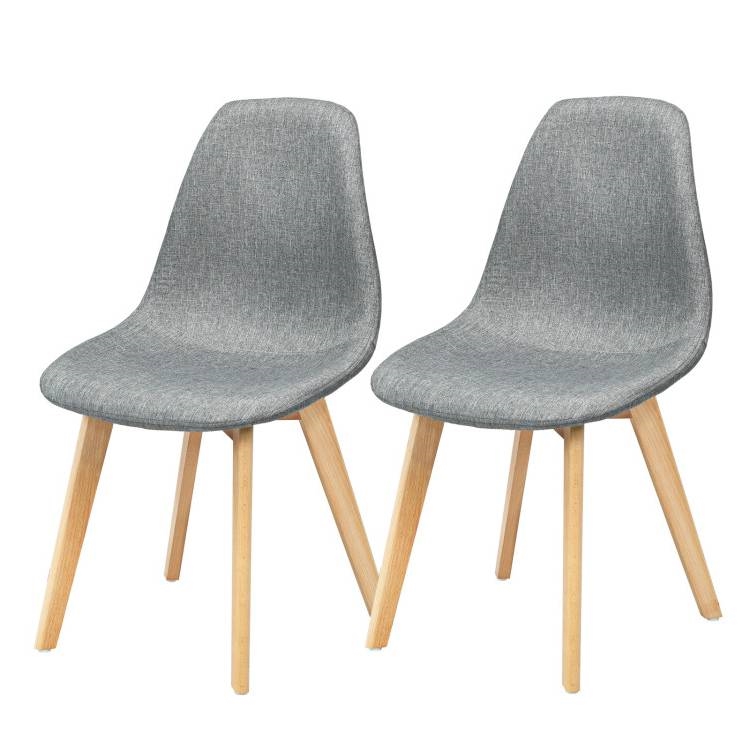 Home > Set of 2 Mid-Century Modern Gray Linen Upholstered Dining Chair with Wood Legs