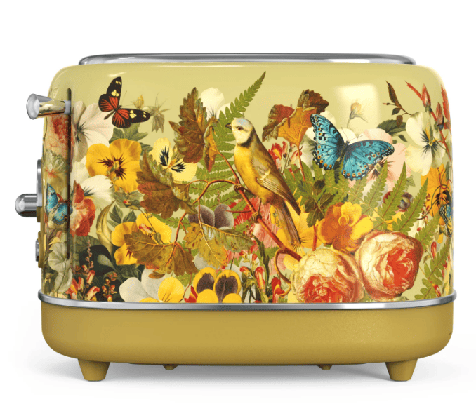 Vintage-style toaster with 1.5" wide slots, 6 browning levels, and thaw/reheat/cancel. Easy-clean crumb tray and high-lift lever.