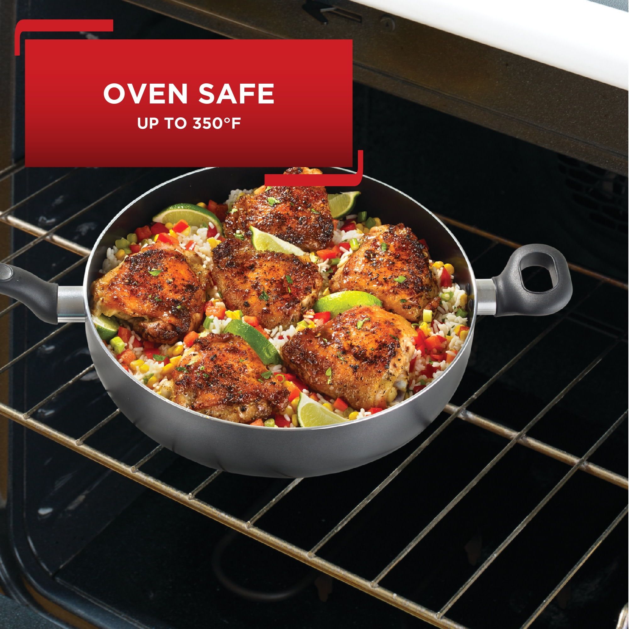 Spacious 5-qt jumbo cooker with durable nonstick for effortless release and cleanup. Ideal for one-pan meals, pastas, stir-fries, and family-size sautés.