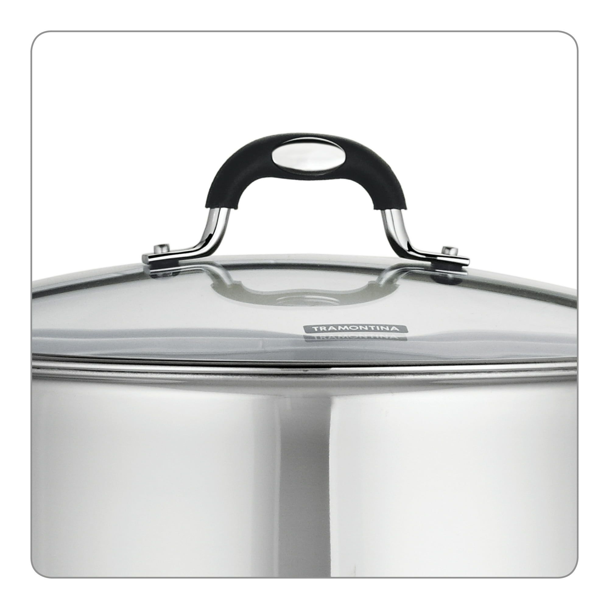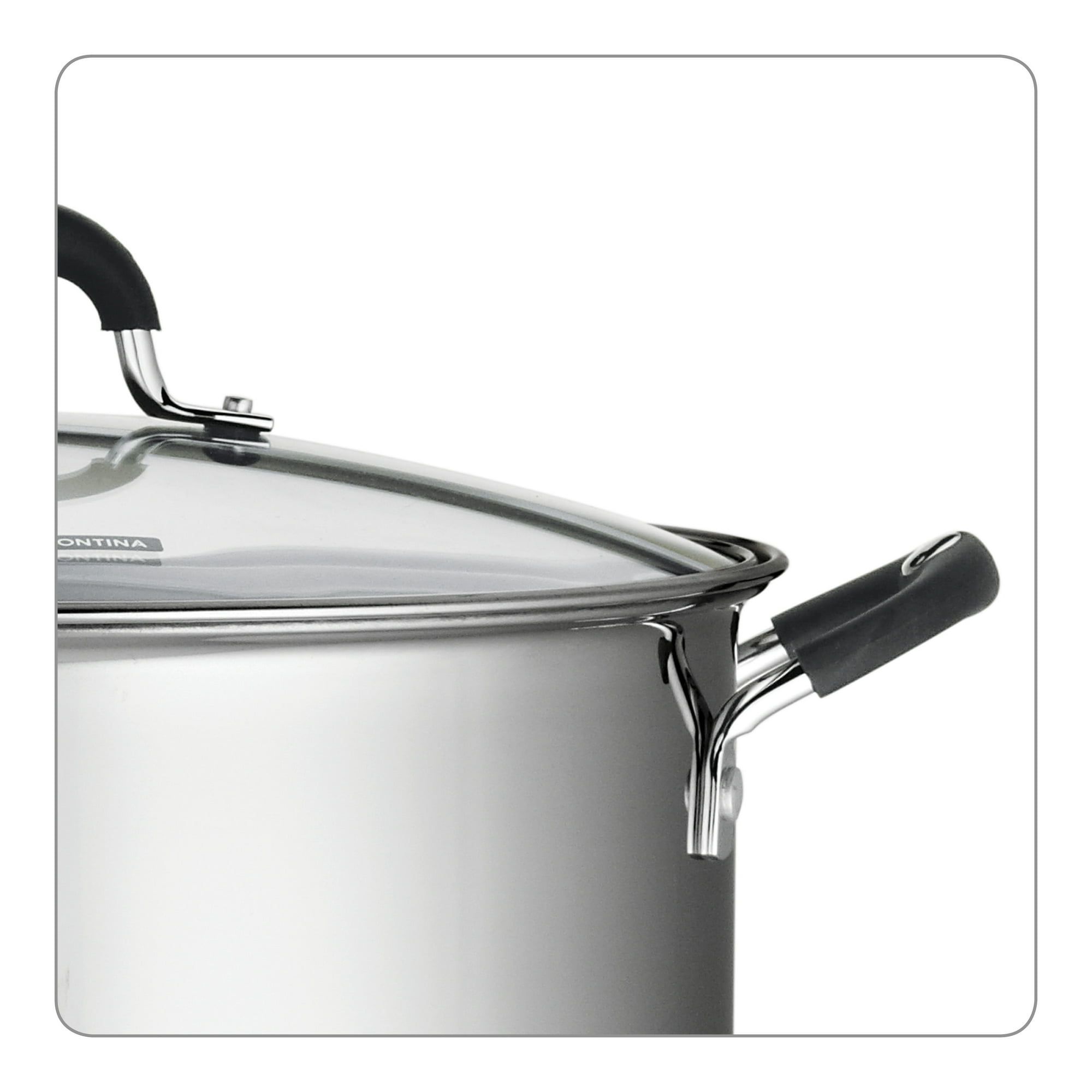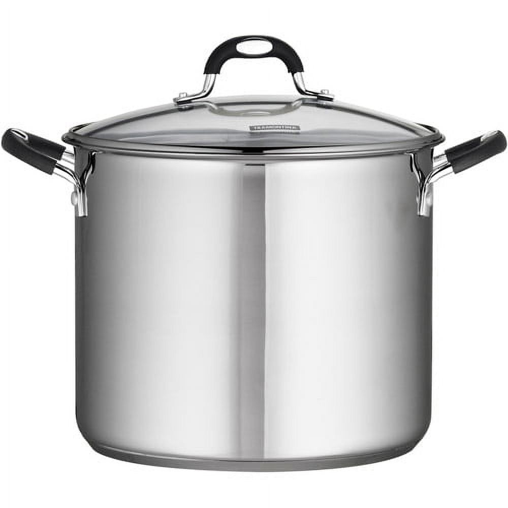 Large 12-quart stock pot with tempered glass lid for easy monitoring. Even heating and roomy capacity for soups, stews, pasta, and batch cooking.