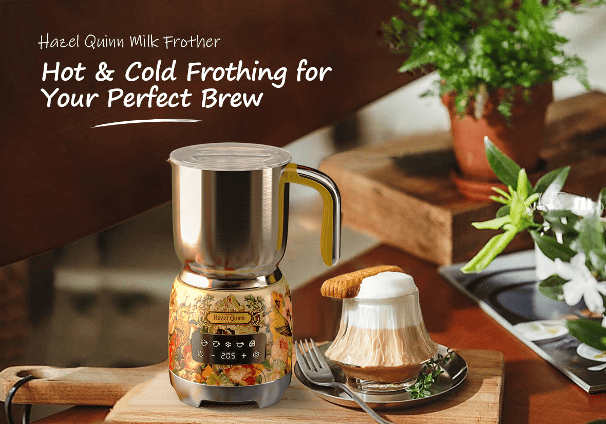 Craft velvety foam for lattes and cappuccinos with intuitive LED touch control and a dishwasher-safe cup in a charming floral design.