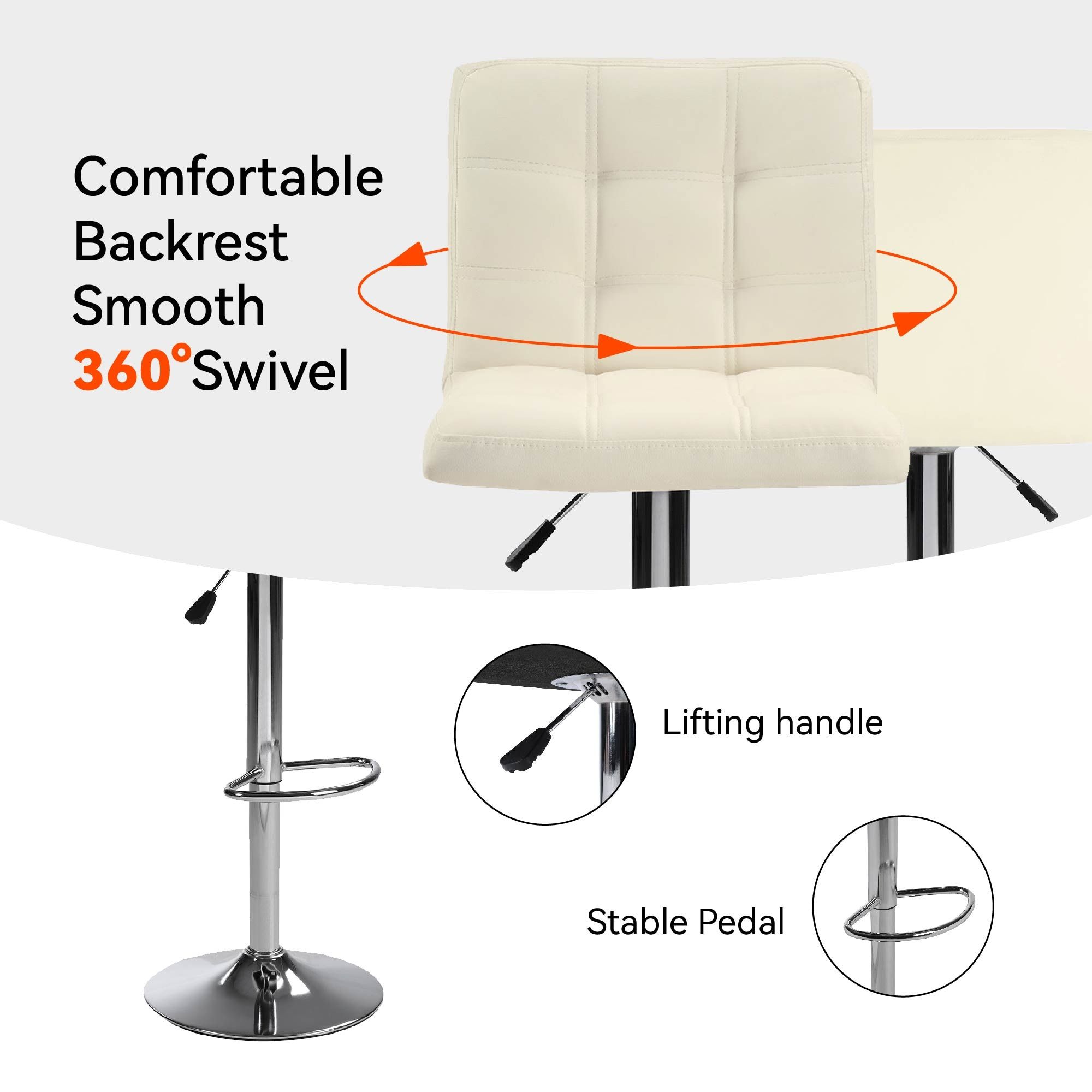 1. "[Adjustable Height & Smooth Swivel]": " Effortless pneumatic lift allows you to customize the height from 24\" to 32\", while the 360° swivel feature provides flexibility for easy movement and access."