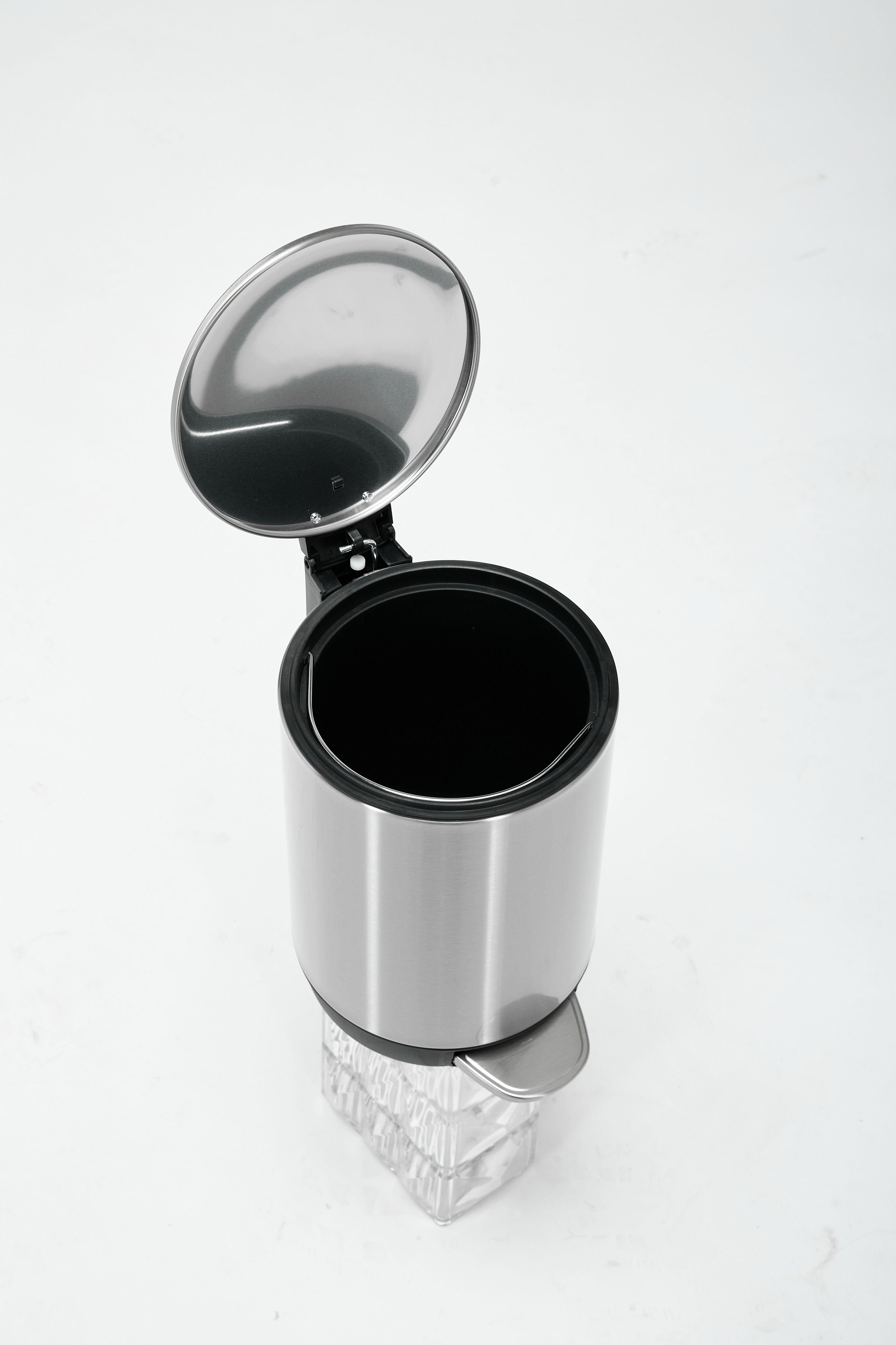 Space-saving 3-liter stainless trash can for kitchens, baths, or offices. Durable body with easy-clean finish and compact footprint.