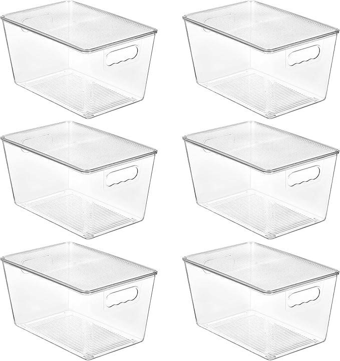 6 Pack Clear Stackable Storage Bins with Lids Large Plastic